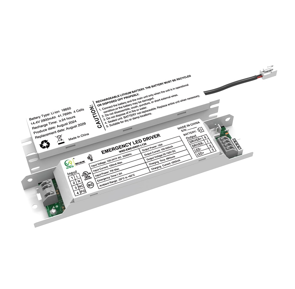 15W Low Temperature Split Built-In Emergency Battery Backup Driver 100-347Vac WSD-EMS15W27-LT20